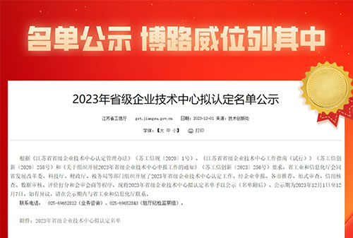 榮譽 | 博路威通過2023年江蘇省省級企業(yè)技術中心認定,專業(yè)研發(fā)力量再獲肯定